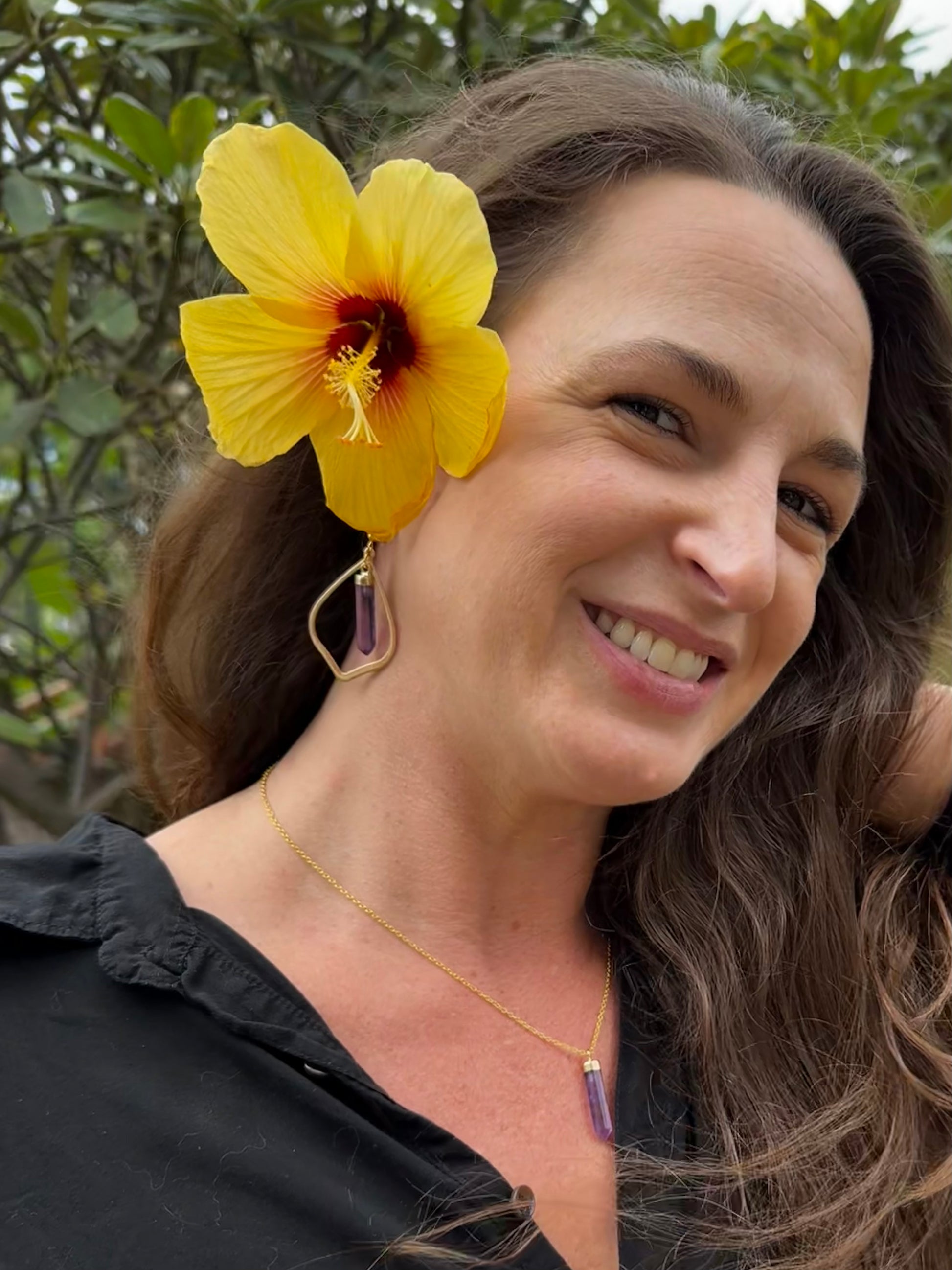 Amethyst Pendant Teardrop Hoop- Gold