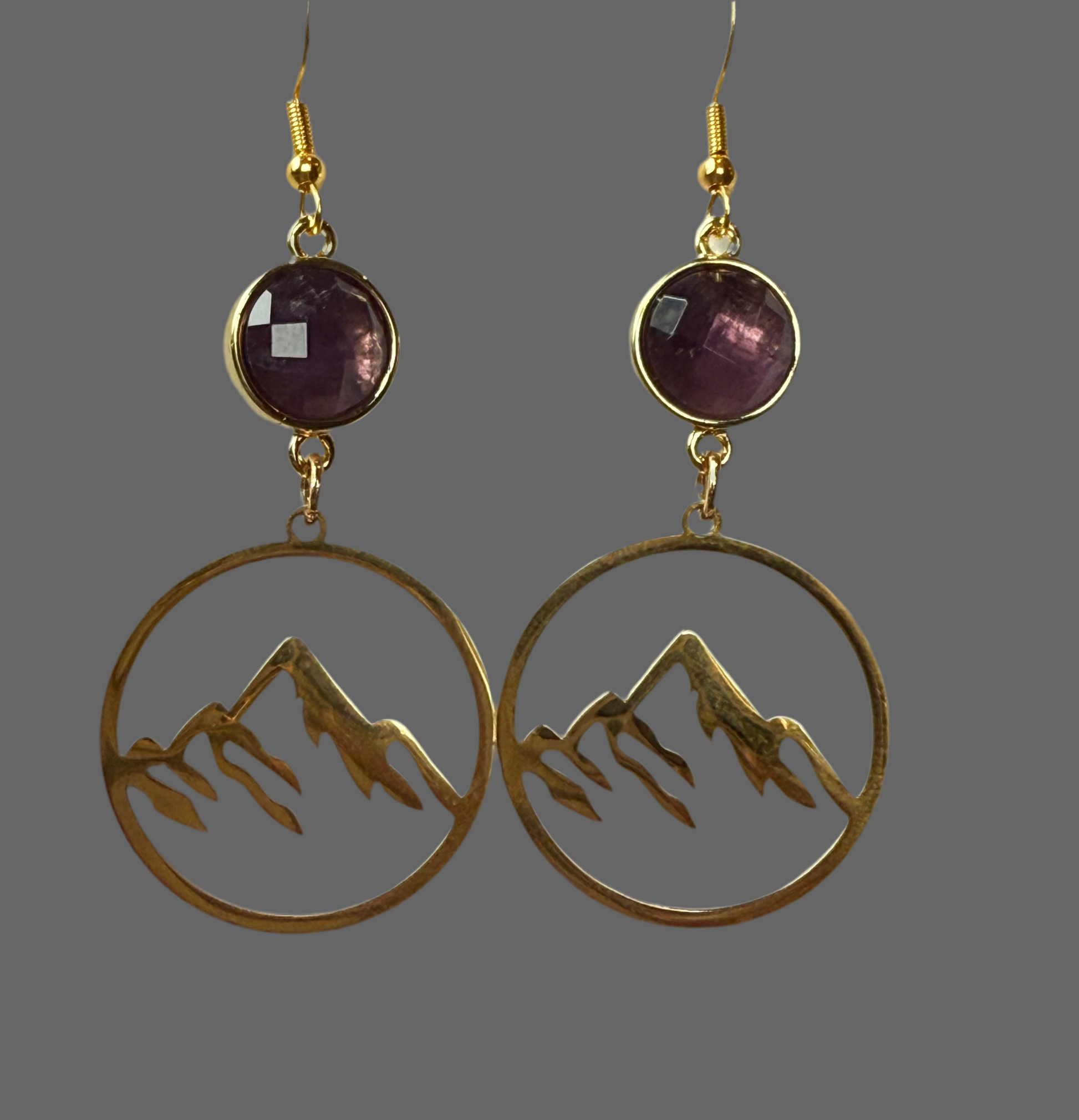 Mountain Hoop Large Amethyst Rose Cut- Gold
