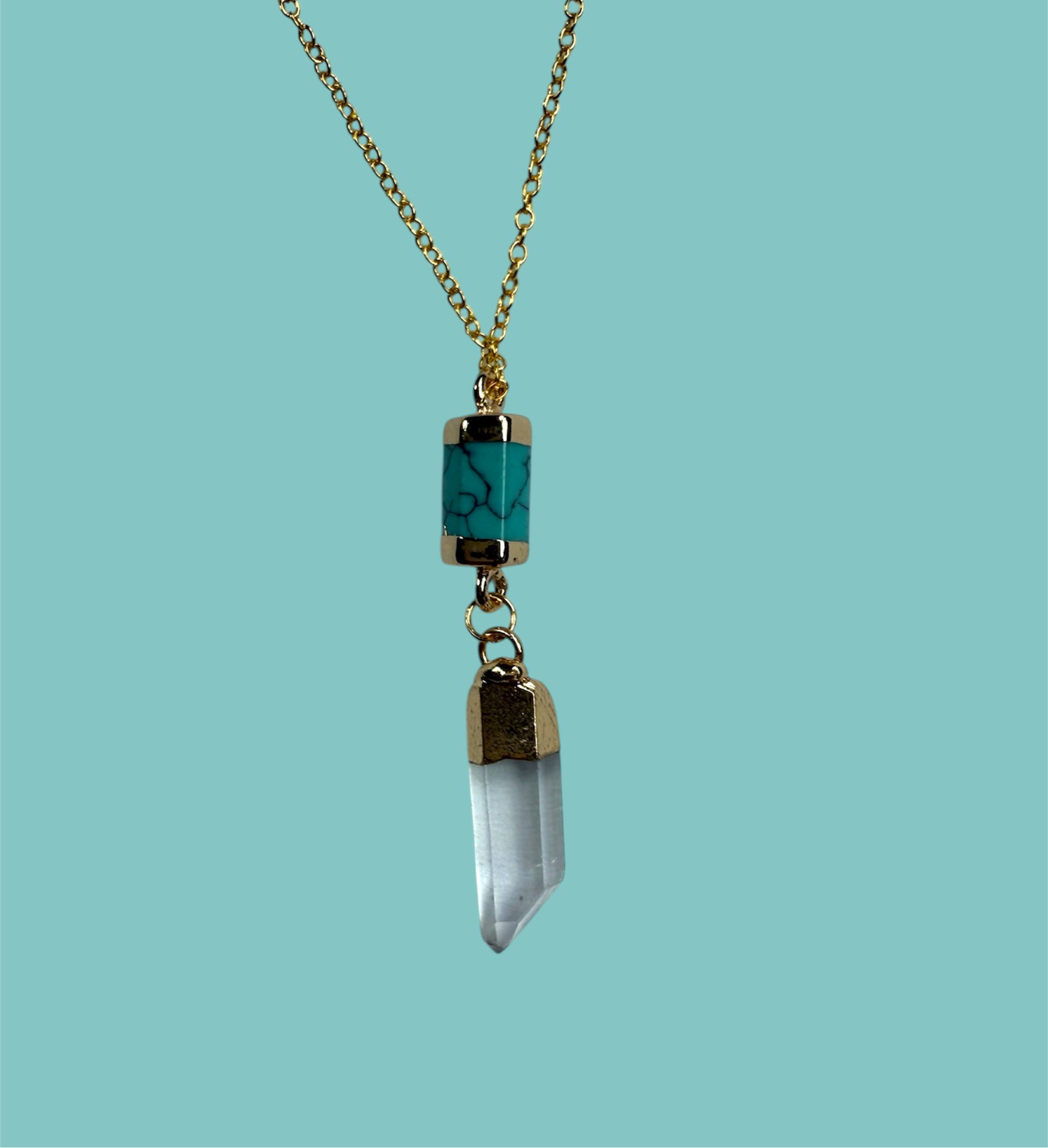 Turquoise Barlet with Crystal Quartz Prism Pendant- Gold Necklace